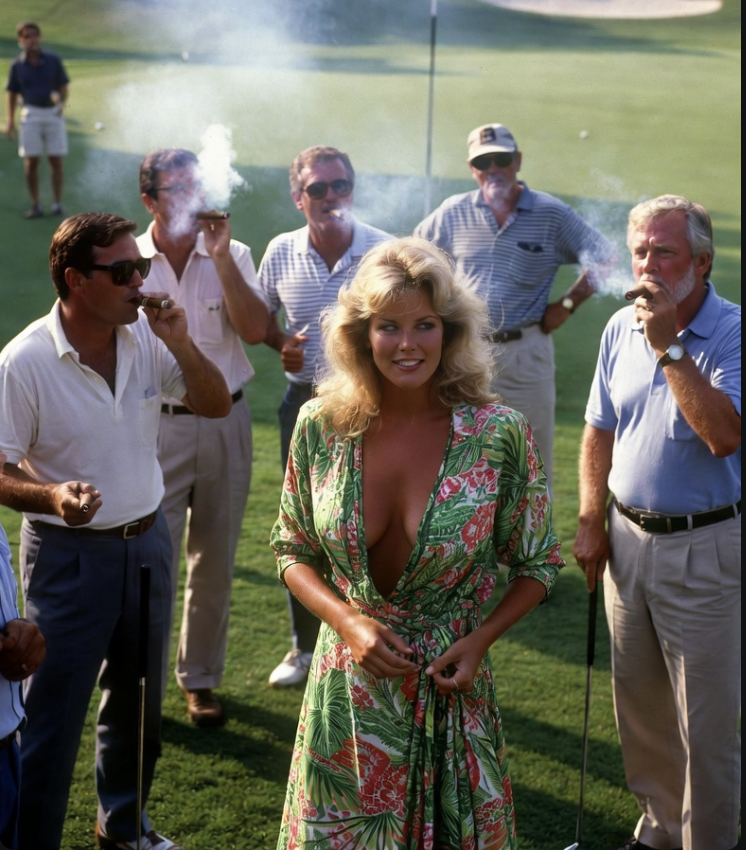 That Saturday she arrived at the par-3 12th—“Stogie’s Signature Devil’s Anus”—wearing nothing but a peach golf visor, a single strand of South Sea pearls the size of small limes, and a smile that could peel lacquer off a 1958 Chris-Craft. In her hand: a 5-iron she wielded like a scepter. Strapped across her back like a caddy’s nightmare: a monogrammed Louis Vuitton golf bag containing only one other club… a 60° lob wedge she affectionately called “The Homewrecker.”